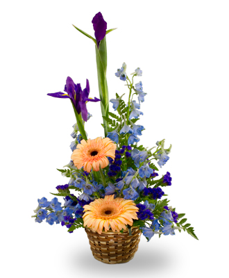 The color blue is typically associated with baby boys, while pink is often associated with baby girls. Our floral arrangement includes blue delphinium and blue iris, making it the perfect welcome basket for a baby boy. The delphinium flowers, shaped like dolphins, represent an open heart and strong attachment, while the blue iris symbolizes hope, admiration, and love.
