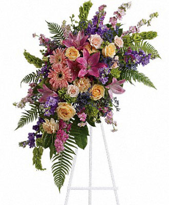If you're struggling to decide on the perfect flowers to bring to a memorial service, you're not alone. With so many options available, it can be difficult to know where to start. One important factor to consider is how you want to remember your loved one. Do you want to focus on their happiest moments or their final moments? If you prefer to celebrate their life, the Heavenly Grace Spray is an excellent choice. This beautiful arrangement features a variety of premium flowers, including pink roses, larkspur, asiatic lilies, gerberas, sinuata statice, peach roses, carnations, purple stock, limonium, and bells of Ireland. Each flower holds its own meaning, creating a message of love, affection, grace, devotion, happiness, remembrance, purity, and innocence. Presented on a classic easel, the Heavenly Grace Spray radiates with vibrant yet calming hues, adding a touch of beauty and hope to a somber occasion. This bouquet offers comfort to the grieving family and serves as a spot of color on an otherwise dreary day. Our local florist offers same-day delivery throughout the U.S. and Canada, so you can rest assured that your tribute will arrive on time. You can also book in advance to ensure that your loved one is honored in the perfect way.